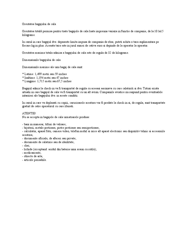 vizitati articolul complet aici : https://www.vola.ro/ghid/bagaje-de-calatorie 8.5 ridicarea si livrarea bagajului de cala. Orice diferență de greutate a bagajelor de cală față de limita. Înainte să începeți împachetările în valiza sau.